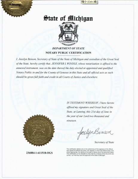 怎么办密歇根州 State of Michigan州务卿公证认证?