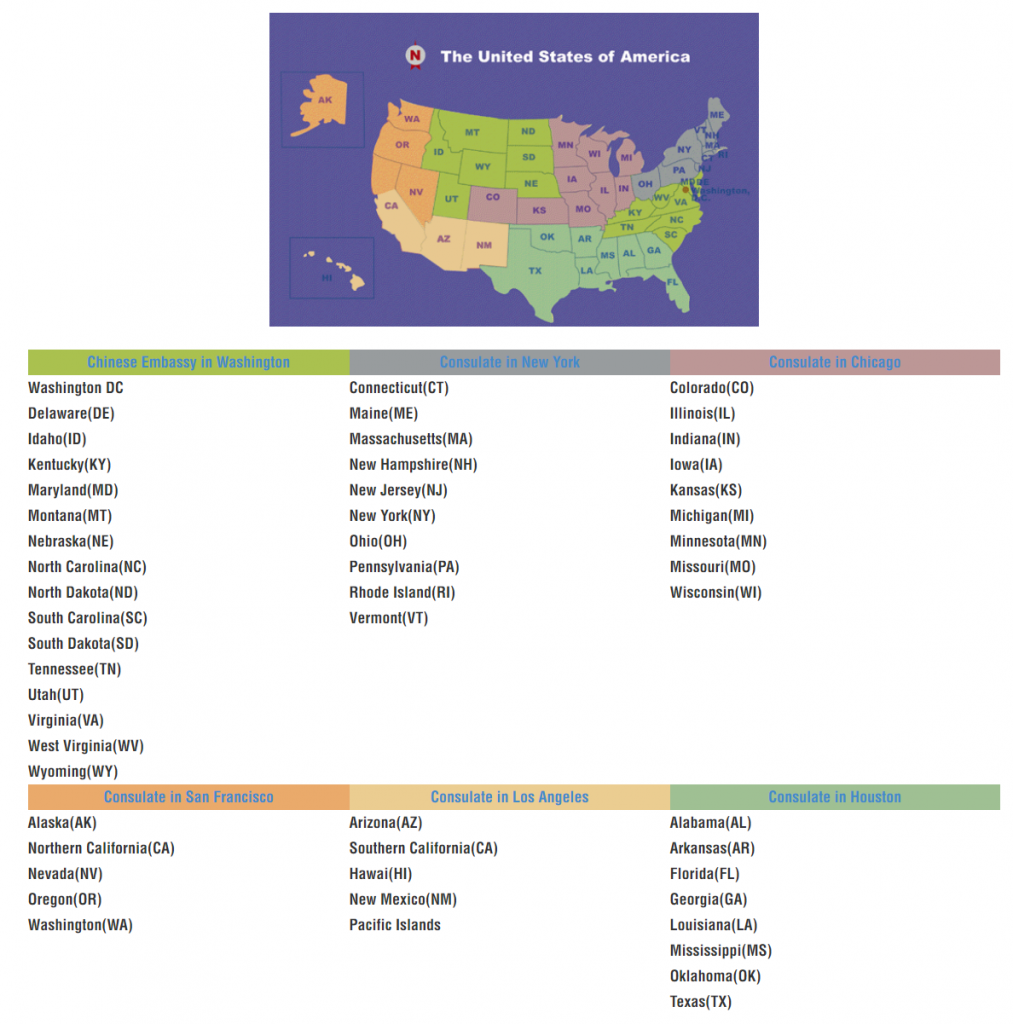 第一步了解领事馆的区域划分,虽然申请表都一样,但是每个领事馆的填写内容不一样。